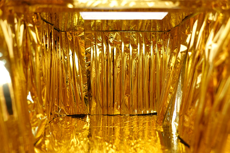 Für die drei Räume im Kunsthaus haben sie eine zusammenhängende Ausstellungssituation geschaffen. Im ersten Raum eröffnen Zeichnungen und Skizzen eine thematische Annäherung an das Thema. Im zweiten Raum spielt eine Installation aus goldener Rettungsfolie mit dem Licht. Die Ausstellung mündet in dem experimentellen Kurzfilm NORDLICHT.