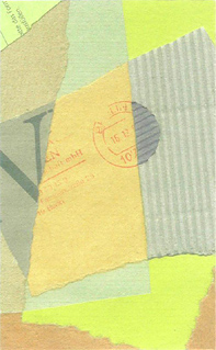 De Chirico hat einmal gesagt: "Die Kunst ist gleichsam ein Schmetterlingsnetz des Schicksals, das diese ungewöhnlichen Momente einfängt." In den beiden Räumen hier in Dahn können wir betrachten, welche Fänge dem US-Amerikaner Paul Bright ins Netz gegangen sind. Auf den kleinformatigen Werken sind Billet- oder Etikettenteile mit verschieden farbigen, glatten oder geriffelten Papieren und Stoffteilen zu Collagen zusammengefügt.