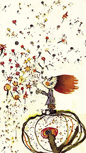 Zum Schluss möchte ich noch kurz auf eine Serie von Zeichnungen eingehen, die ebenfalls hier ausgestellt sind. "Die dreizehn Monate". Xaver Mayer hat hier ein Buch mit dem gleichnamigen Titel von Erich Kästner illustriert. Als Künstler hat man die Freiheit, die Welt so zu gestalten, wie man sie sieht. Mit den eigenen Werkzeugen, kann man jemanden fliegen lassen, ihm eine überdimensionale Nase verpassen, ihn auf eine Blume stellen oder dem Jahr einen dreizehnten Monat hinzufügen. In welchem sich dann alle guten Erscheinungen des Jahres tummeln, alle Naturgesetze außer Kraft gesetzt werden und nur die schöpferische Macht des Künstlers zählt, deren er sich voller Wonne hingibt.
