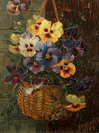 Heinrich Strieffler: "Blumenampel", 1903, Öl auf Pappe