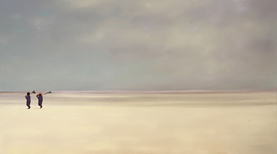 Pfalzpreisträger 2006 Peter Rösel: "22°03.55 S - 14°14.56 E - Hdg 340°", 2006, Öl auf Leinwand, 100 x 180 cm (der Titel verweist auf die Koordinaten des Entstehungsortes: Namibia), Foto: Peter Rösel