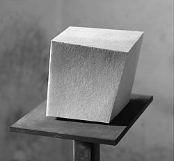 Massiv sind Marmorskulpturen von Trimpin. Ihn interessiert das Volumen, die Dichte der kubischen Formen, denen er die Schwere nimmt, auf dem Podest leicht anhebt und irritierend scheinbar schweben lässt. Am Stein entwickelt er mit Hammer und Meißel auf der verletzlichen Oberfläche verzogene Formen, indem er Flächen dreht, krümmt und kippt, um dann die Bewegung im harten festen Stein erstarren zu lassen. Das Material mit einer jahrtausendealten kunsthistorischen Tradition ist immer noch aktuell und bereit für Kunst. Kraft und Anstrengung und viel Zeit sind fast anachronistische Faktoren, die Trimpin bei seiner Arbeit bewusst einsetzt, indem er immer wieder an ihnen arbeitet, umarbeitet, sogar nach Ausstellungen ihnen wieder neue Form gibt.