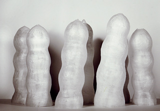 Sophie Casado formt ihre fragilen lichtdurchlässigen Seidenpapierplastiken nach Vorbildern aus der Pflanzenwelt. Die empfindsamen weißen Papierobjekte vermitteln mit ihren einfachen Formen eine Vielzahl von Assoziationen, erinnern an Wachstum wie an Vergänglichkeit.
