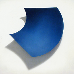 Hart und widerspenstig ist auch das Material von Heiner Thiel. Bevor seine Aluminiumplatten die gewünschte Form einnehmen, plant er die viereckigen verzogenen Kugelsegmente präzise im Computer. In mehreren Arbeitsschritten, bei denen sie auch monochrom farbig eloxiert werden, entstehen Tableaus, die in ihre konkaven Form unaufdringlich aber bestimmt in den Raum verweisen. Jeder Blickwinkel ist einmalig und neu in der Wahrnehmung der Form und der Farbe.