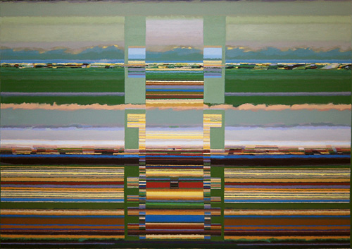 Der Maler und Bildhauer Rolf Gentz, gerade 80 Jahre alt geworden, ist in der Region kein Unbekannter. In zahlreichen Arbeiten im öffentlichen Besitz ist sein Werk zu bewundern. Der Arnold-Schüler ist im Laufe seines Künstlerlebens mit vielen Preisen ausgezeichnet worden. Sein Name ist vor allem mit abstrakten menschenleeren Landschaftsbildern verbunden. Ausgehend von zahlreichen Reisen rund um den Globus verdichtet er auf der Leinwand seine Eindrücke. In mittelalterlicher Maltechnik - mittels Leinöl und Bienenwachs - bringt er Farbschicht um Farbschicht auf, um in einem langsamen und konzentrierten Arbeitsprozess zu einem stark verfremdeten Extrakt von Landschaft zu kommen. Die feinen Pigmente sorgen dafür, dass die Bilder je nach Lichtstimmung ihren Charakter wechseln und erlauben ein geradezu kontemplatives Versenken in seine großformatigen Landschaftsinterpretationen.