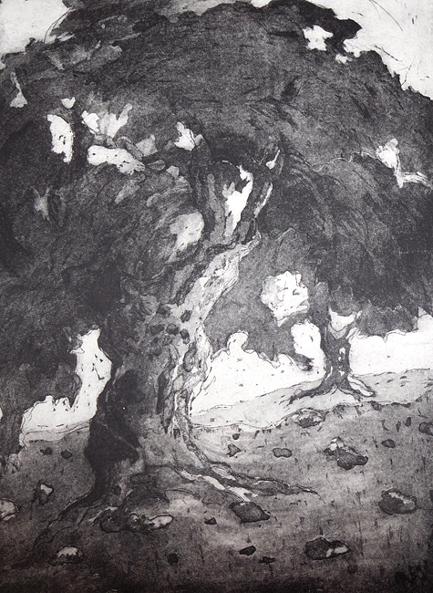 auseinander. Dabei bringt sie die Natur häufig auf Kupferplatten. Bäume haben für Anton etwas Schützendes, Beständiges, aber auch etwas Mystisches und Symbolträchtiges. Es sind Lebensbäume.