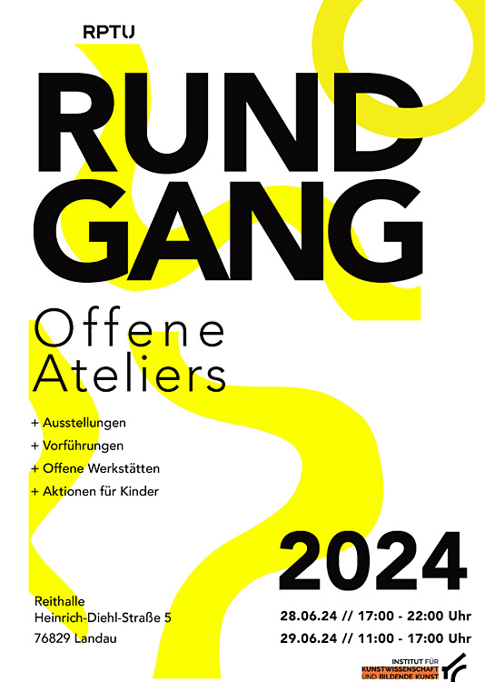 Am28.06.24 und 29.06.24 finden in der Reithalle, dem "Zuhause" der Kunststudierenden an der RPTU in Landau zwei Tage der offenen Tür statt, der an Kunsthochschulen sog. "Rundgang".