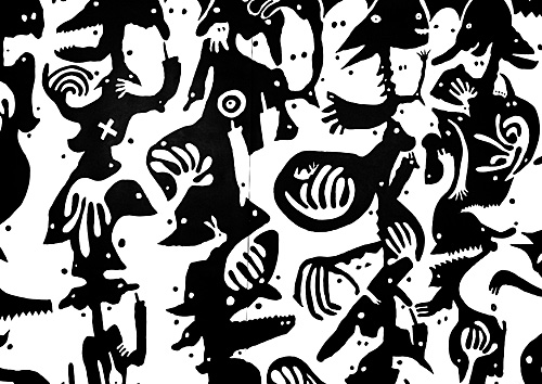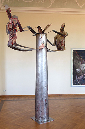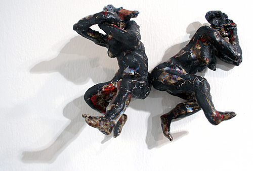 Anna Stangl (Wien) und Ana Laibach (Mannheim) machen den Betrachter umgebende Installationen aus bemalten Papierbahnen und großen Scherenschnitten. Emö Simonyi (München) bemalt Leinwand und Pappkisten mit großen Leibern, Eckhard Froeschlin (Schwäbisch Hall) bemalt Aluflächen und fertigt große, malerische Pastellzeichnungen, Sybille Onnen (Karlsruhe) zeichnet Figuren in ebensolcher Bewegung wie ihre Keramiken. Alle suchen nach einer umfassenderen Aussage als es in einer Gattung alleine möglich zu sein scheint.