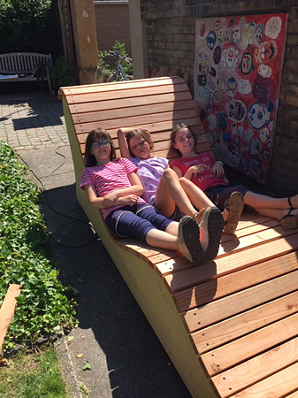 Wir freuen uns, mit Euch ins Gespräch zu kommen, gemeinsam mit Euch die Einweihung der neuen großen Sitzbank im Außenbereich und die neu gestaltete Durchgangstür zur Werkstatt zu feiern.