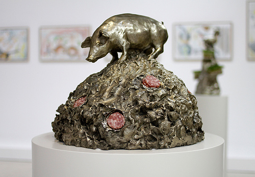 Das Museum Pfalzgalerie Kaiserslautern (mpk) zeigt unter dem Titel "Endgericht" Butter- und Neusilberskulpturen sowie Zeichnungen von Sonja Alhäuser, die sie in den letzten fünf Jahren geschaffen hat. Die teilweise eigens für die Präsentation im mpk entstandenen Arbeiten sind als Auftakt zu der umfangreichen Ausstellung ["Apocalypse Now! Visionen von Schrecken und Hoffnung in der Kunst vom Mittelalter bis heute"] (Eröffnung am 21.11.14) im Oberen Foyer des Museums zu sehen.
