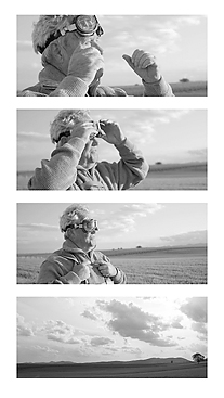 "Strange" freilich, seltsam also, wirken auch sie, für sich genommen. Transportieren sie doch den Betrachter im Wortsinn in eine fremde Welt. Auf den ersten Blick scheint es eine Welt der Tüftler, die Felix Redlingshöfer fotografisch in zartem Grauweiß präsentiert. Zwei Männer in Arbeitsanzügen, der eine mit Brille, der andere mit Russenkappe und Zigarre versehen, erwecken den Eindruck, als ob sie alle Zeit der Welt hätten für ihre Erfindungen, ja, sich noch so richtig daran erfreuen könnten wie die Kinder. Und offensichtlich von keinem anderen Erkenntnisinteresse getrieben würden als allein von ihrem Spieltrieb, dessen Ziele freilich für den Betrachter (noch) im Dunkel bleiben.