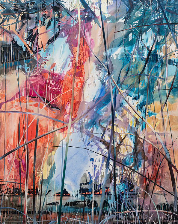 Im Wald findet Theresa Möller ihre künstlerische Bildsprache: Struktur und Unordnung; Diversität, Wiederholung und Formenreichtum; Kraft, Destruktivität und Zartheit. Großformatige Leinwände voller ästhetischer Ausdruckskraft zeigen die Erhabenheit von Farben und Formen. Diffuse Übergänge und Verbindungen von kultureller Formung und organischer Entwicklung, von Gegenständlichkeit und Abstraktion, von wiederkehrender Entstehung und unausweichlichem Zerfall prägen die Arbeiten von Theresa Möller.