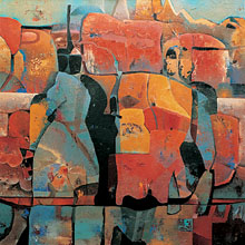 Vornehmlich in warmen Erdtönen arbeitend fallen einige Arbeiten, bei denen kalte Blautöne dominieren, aus dem Rahmen. Doch ganz ohne die warmen Erdfarben scheint Schneickert nicht auszukommen. So wie in seinem Bild "Sub", bei dem die Kälte des Blau durch warmes Braun und heißes Rot gemildert ist. Aus den Farben treten erst bei näherem Hinsehen die Figuren zu Tage, die Schneickert so sorgsam nebeneinandergesetzt hat. Aus dem Chaos streckt sich dem Betrachter eine Hand entgegen und je näher man den Bildern kommt, je stärker sich der Gesichtskreis auf die zum Teil sehr großformatigen Bilder fixiert, so abenteuerlicher wird das, was sich an Figuren, Gestalten und Geschichten aus dem wabernden Farbenchaos löst. Zufällig ist bei den scheinbaren Zufallsprodukten Schneickerts allerdings nichts. Er setzt gezielt die Möglichkeiten ein, die ihm das Zeitalter der Reproduzierbarkeit bietet, lässt es dabei aber nicht bewenden, schafft aus den durch moderne Technik möglich gewordenen Formen etwas völlig Neues.