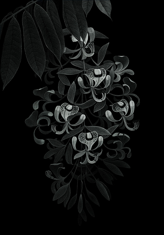 Die schwarz-weißen Arbeiten zeigen vornehmlich Pflanzen, die ursprünglich im Fernen Osten wurzeln. Wie sich ein Wort im Echo wiederholend vervielfältigt, tauchen einzelne Bildelemente oder ganze Motive in der Ausstellung mehrfach auf. Über die Grenzen des Bildes, der Geografie und der Epocheneinteilungen hinweg entspannt sich so ein Geflecht hybrider Bilder.