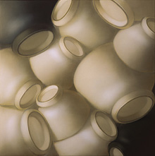 Das ist auch bei Laurent Reypens der Fall. Sein Motiv ist seit nunmehr 20 Jahren die Kaffeetasse und zwar in ihrer schlichten dickwandigen Fassung aus Frankreich. Etwa 200 solcher Exemplare hat er zu Hause gesammelt und er malt sie immer und immer wieder - in kleinen, mittleren und übergroßen Formaten.