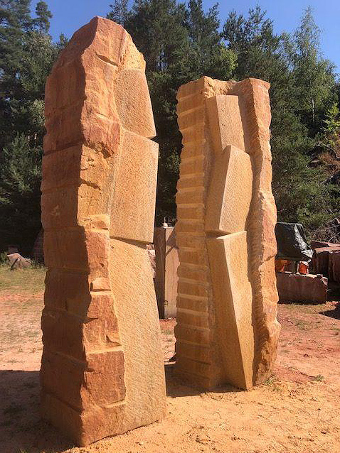 Europa wird zur Zeit mit Gewalt zwischen Ost und West gespalten, es gehört geografisch aber zusammen. Meine Idee ist es, diesen Bruch darzustellen und die innere Verbundenheit vieler Menschen durch die Zugewandtheit zum Ausdruck zu bringen. Die dargestellten Figuren, die in den Rohblöcken eingehauen sind, sind in ihrer Ausdruckform so angeordnet, dass sie sich formal ergänzen und sich zugewandt sind.