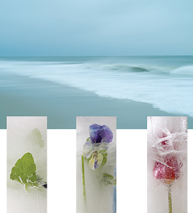 Die von Technik-, Produkt- und Werbeanforderungen befreiten künstlerischen Themen seiner neuen Arbeiten erlebe ich wie einen Ruf nach dem Leben an sich. Diese eigene Bild- und Wahrnehmungswelt zentriert sich bezeichnend um das Thema Wasser, Sinnbild des Ursprungs allen Lebens. Seine zarten "Eisblüten" bettet er noch behutsam wie Versuchsobjekte in erstarrendes Wasser, um zwischen dem Forscherdrang gegenüber physikalischen Gesetzen und der Herausforderung, diese für sich festzuhalten, schließlich alles Gewusste loszulassen - das Sein zuzulassen, so wie es ist, mit allen Augenblicken der Verwandlung von Wasser und Eis in der Verfremdung ihrer sich verändernden Zustände.