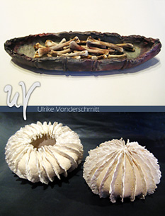 Ulrike Vonderschmitt, Jahrgang 1947, machte 1981 ihre ersten Erfahrungen mit Ton. Es folgte ein Studium bei Horst Winkler, Rodalben, und Georg Krüger, Bannstein-Eguelshardt. Seit 1993 besitzt die Künstlerin, die auch Kurse an der Volkshochschule Pirmasens gibt, eine eigene Werkstatt. Zu den Arbeiten, die bei der Ausstellung in der Kreisgalerie zu sehen sind, wurde die Künstlerin durch Urlaube am Meer inspiriert, was sich auch im Titel "Mediterrane Formen" widerspiegelt. Sie gab sich eine Form vor, die sie dann zur Abstraktion variierte. Gebrannt wurden die Keramiken in der Grube im Holzfeuer und im Elektroofen.