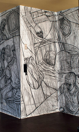 Werner Degreifs raumfüllende Wandzeichnungen sind temporäre Installationen, die den Wänden eines jeweiligen Ausstellungsortes angepasst sind.