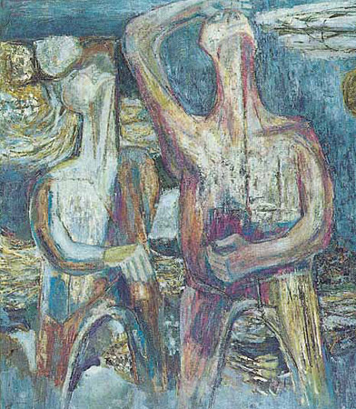 Die 1968 von Willy Weiglein formulierte Aussage zeigt einen Maler, der nicht nur die Aspekte des damaligen Kunstgeschehens wie das ausklingende Informell beobachtet, sondern die durch gesellschaftliche Veränderungen hervorgerufenen Seh- und Empfindungsweisen erkennt. Gerade seine angesprochenen figuralen Formverdichtungen bilden einen Schwerpunkt der Ausstellung. Es wird deutlich, dass die Figuren keine realistische Darstellung bestimmter Personen ist, sondern es sind erfundene Figuren, die freilich ihren Ursprung in der sichtbaren Welt haben. Die großen archaischen Akte, an Muttergottheiten vergangener Kulturen erinnernd, entstehen durch die bewusste Verschmelzung von Körpern mit äußerst differenziertem Bildgrund. Die Figuren in ihren kraftvollen Konturen scheinen Verfall und Vergänglichkeit zu trotzen. Die meisterhafte Serie wurde durch das großformatige Gemälde "Auguren" eingeleitet. Eben jenen Gestalten der Antike, die aus dem Vogelflug die Zukunft voraussehen sollten. Begleitet werden die Gemälde von figürlichen Zeichnungen und Mischtechniken landschaftlicher Strukturen.