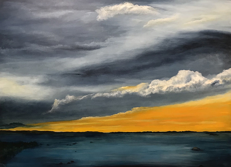 Zu vielen Motiven haben ihn seine häufigen Aufenthalte an der schwedischen Schärenküste inspiriert, denn in diesen Landschaften verbinden sich Wasser, Himmel und Licht zu eigentümlicher Tiefe und Leuchtkraft der Farben. "Wichtig ist mir, dass meine Kompositionen dem Blick des Betrachters Ruhe und innere Stille vermitteln" sagt er. Auch die fantasievollen Titel seiner aktuellen Ölbilder, vor allem seiner "Himmel-Wolken-Impressionen" korrespondieren mit diesem Lebensgefühl, etwa "Wenn der Wind kommt, singen die Gräser", "Habe nie mit der Stille gesprochen" oder "Den Flieder in den Wolken spüren". Erstmalig zeigt der Künstler in dieser Ausstellung sehr individuell ausgewählte Motive in kleinformatigen Abmessungen.