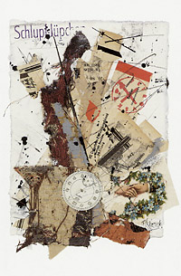 Widerstand ist eine der Grundvoraussetzungen seiner Kunst. In Speyer zeigt er eine Serie von Collagen, die typisch sind für sein Oeuvre. Zu Beginn des Irakkrieges befand sich Petrovsky in einer Schaffenskrise. Es fielen ihm Gedichte von Hans Arp in die Hände - ein Künstler, der nicht nur mit seiner Kunst aus der Dadaismusphase für ihn relevant ist. Es entstanden 120 kleinere Arbeiten auf Papier und 40 Eier. Schwarz sind sie nur in Hans Arps Worten.