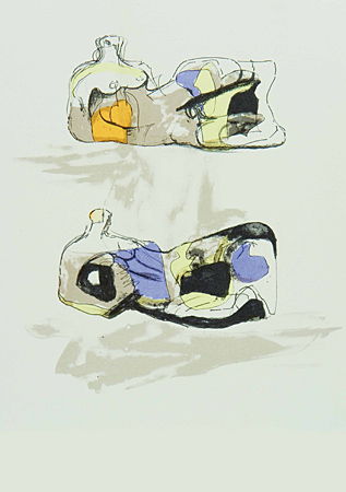 Henry Moore: "Two reclining figures", 1978, Farblithographie, 32 x 23,5 cm, Foto: mpk. Copyright Henry Moore Foundation
