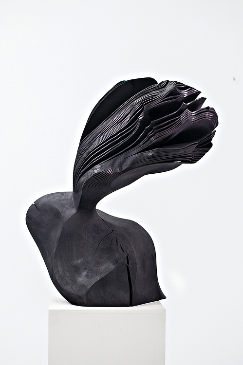 Die Holzskulpturen von Lars Zech entstehen aus den Baumstämmen seiner Heimat Althengstett im Nordschwarzwald. Vorwiegend Ahorn- und Walnusshölzer bearbeitet er mit der Band- bzw. Kettensäge. So entstehen in einem langwierigen Prozess kunstvolle Objekte nach seiner inneren ästhetischen Vorstellung. Zech reagiert dabei sensibel auf das raue Material des Holzes. Ein fester Korpus mündet in hinaufragende fächerartige, feingliedrige Segmente, Statik und Bewegung verleihen den moving portraits Spannung und Dynamik.