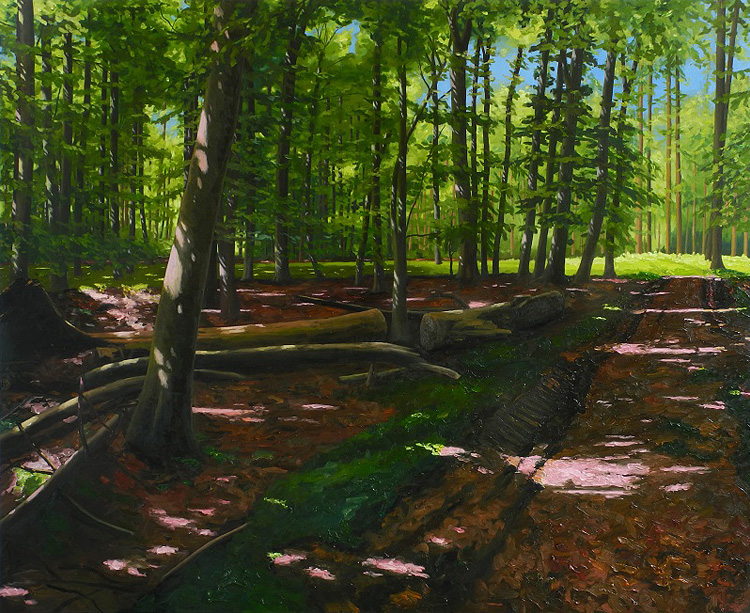 Der in Berlin lebende Maler Hermann Reimer verzaubert mit seinen Waldbildern in unterschiedlichen Formaten mit ihrem expressiven Farbduktus und verschwommenen Konturen. Seine Waldlichtungen, seine sonnendurchfluteten Pfade und Alleen üben geradezu Sogwirkung auf den Betrachter aus. Die bewusste Auswahl von Bildausschnitten und ein bewegtes Licht- und Schattenspiel mit Blickrichtung vom Baumstamm zur Krone wecken Assoziationen zu den Impressionisten ebenso wie zu Klaus Fußmann, dessen Meisterschüler er war. Dabei vermeidet Reimer jegliches Pathos und Idealisierung.