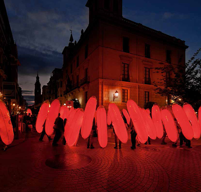 In einem für alle gesellschaftlichen Gruppen offenen, mehrtägigen Angebot wird unter Anleitung Espinosas eine umfangreiche körper- und inhaltsbasierte Erforschung der Geschichte und Gegenwart Ludwigshafens durchgeführt und gemeinsam eine ausdrucksstarke Choreografie erarbeitet. Diese wird am Abend des 24.09.22 in Form einer durch die Innenstadt wandernden partizipativen Performance mit bis zu 40 pulsierenden Lichtskulpturen für ein breites Publikum zur Erfahrung. Dabei bestehen die Möglichkeiten, mit dem Leuchten der tragbaren Skulpturen einen singulären Rhythmus, aber auch einen kollektiven Pulsschlag als Gruppe zu finden sowie ephemere Architekturen und temporäre Räume zu kennzeichnen.