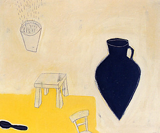 Meike Porz erzählt in ihren Bildern in ruhigem Fluss von den Dingen des Alltags. Chiffrenartig schweben Schale, Tasse, Stuhl und anderes - wie jeder Schwerkraft enthoben - auf pastellgelben, grauen oder beige-weißen, vielschichtig aufgebauten Gründen. Während viele dieser Utensilien lediglich konturiert - im wahrsten Sinne des Wortes - auftauchen, geben ihnen am Bildrand platzierte Blöcke oder Balken in der jeweiligen Kontrastfarbe als ruhige monochrome Farbfläche einen imaginären Halt.