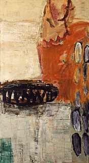 Die scheinbar zusammenhanglosen Motive werden wie Versatzstücke zu einem spannungsvollen Gleichgewicht vor der Farbfläche gruppiert. Es entsteht ein irritierender Gegensatz zwischen Malerei und Zeichnung ganz allgemein, zwischen gestisch-linearer Form abstrakter Zeichnung und farbgefüllter Form. Auch Inhalt transportierende Schriftzeichen tauchen zuweilen auf, um sogleich durch teilweise Übermalung bzw. Überzeichnung wieder geheimnisvoll verrätselt zu werden.
